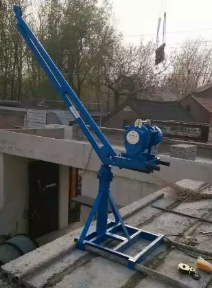 樓房上料吊運機重量輕、容易搬運,在房頂上清理出一片沒有積雪的空地后,在吊運機的底座上壓上配重物料,就可以用吊運機來吊運除雪工具,還可以用于日后的房頂修復(fù)工作和秸稈飼料的晾曬工作。